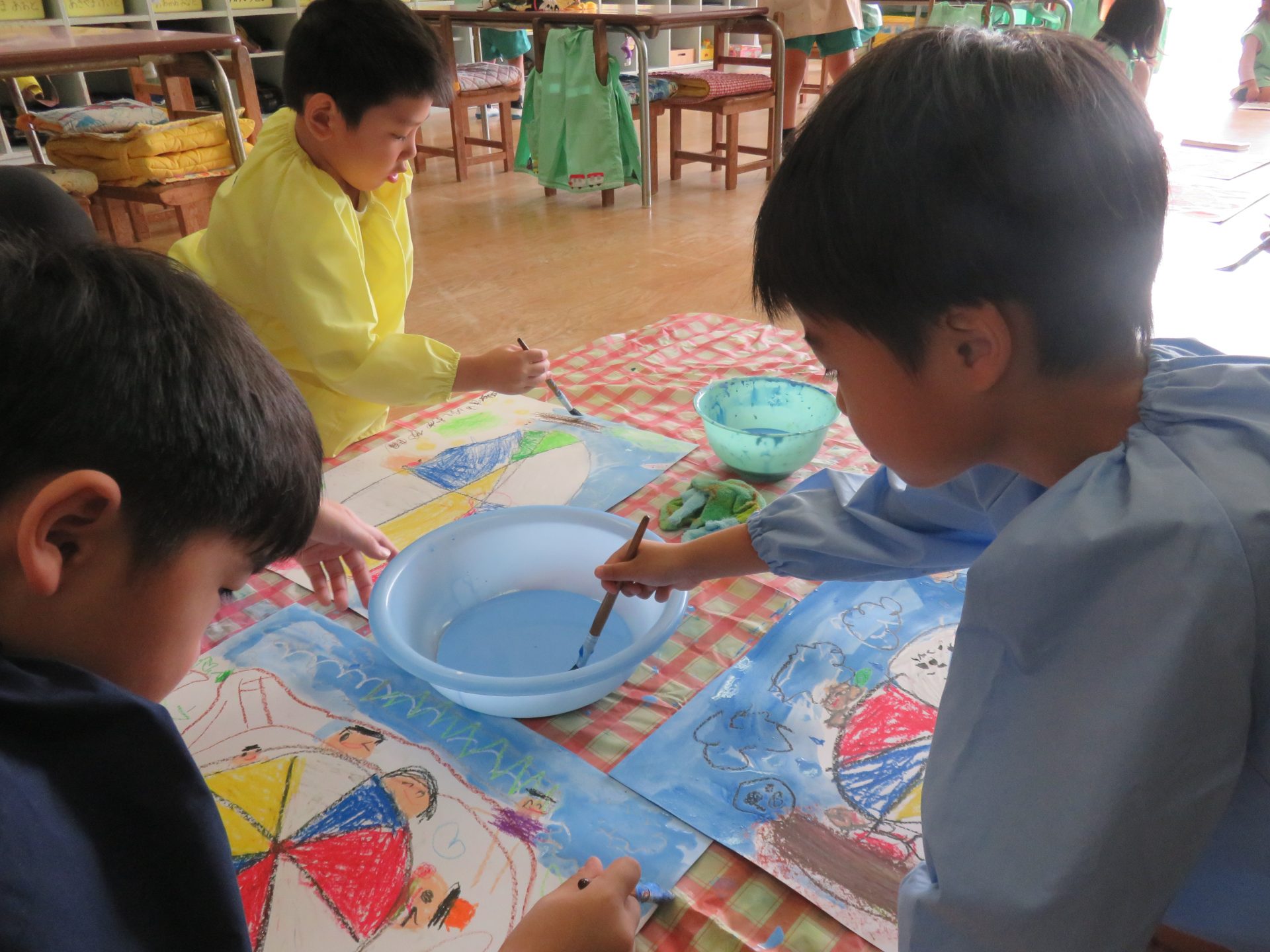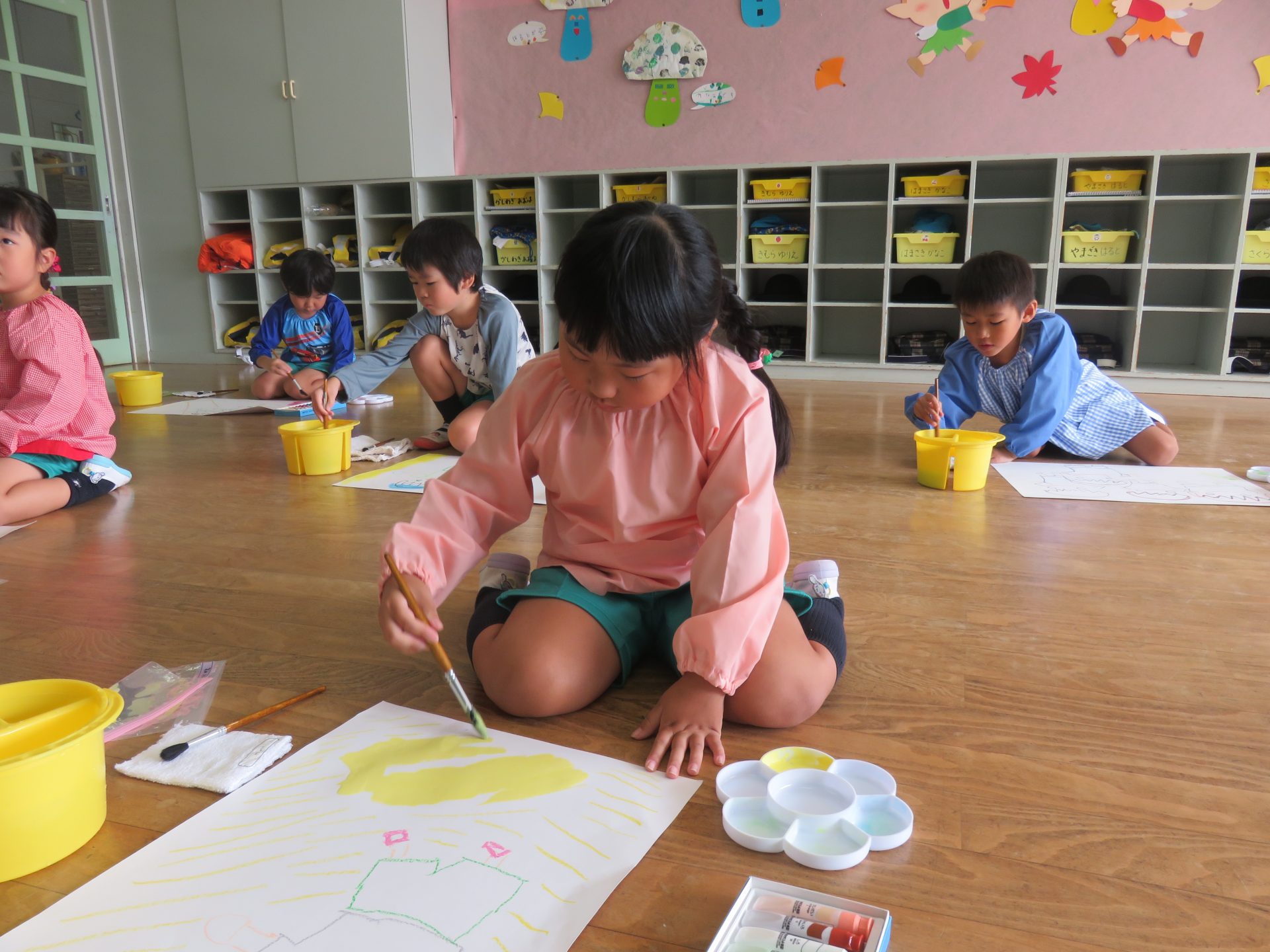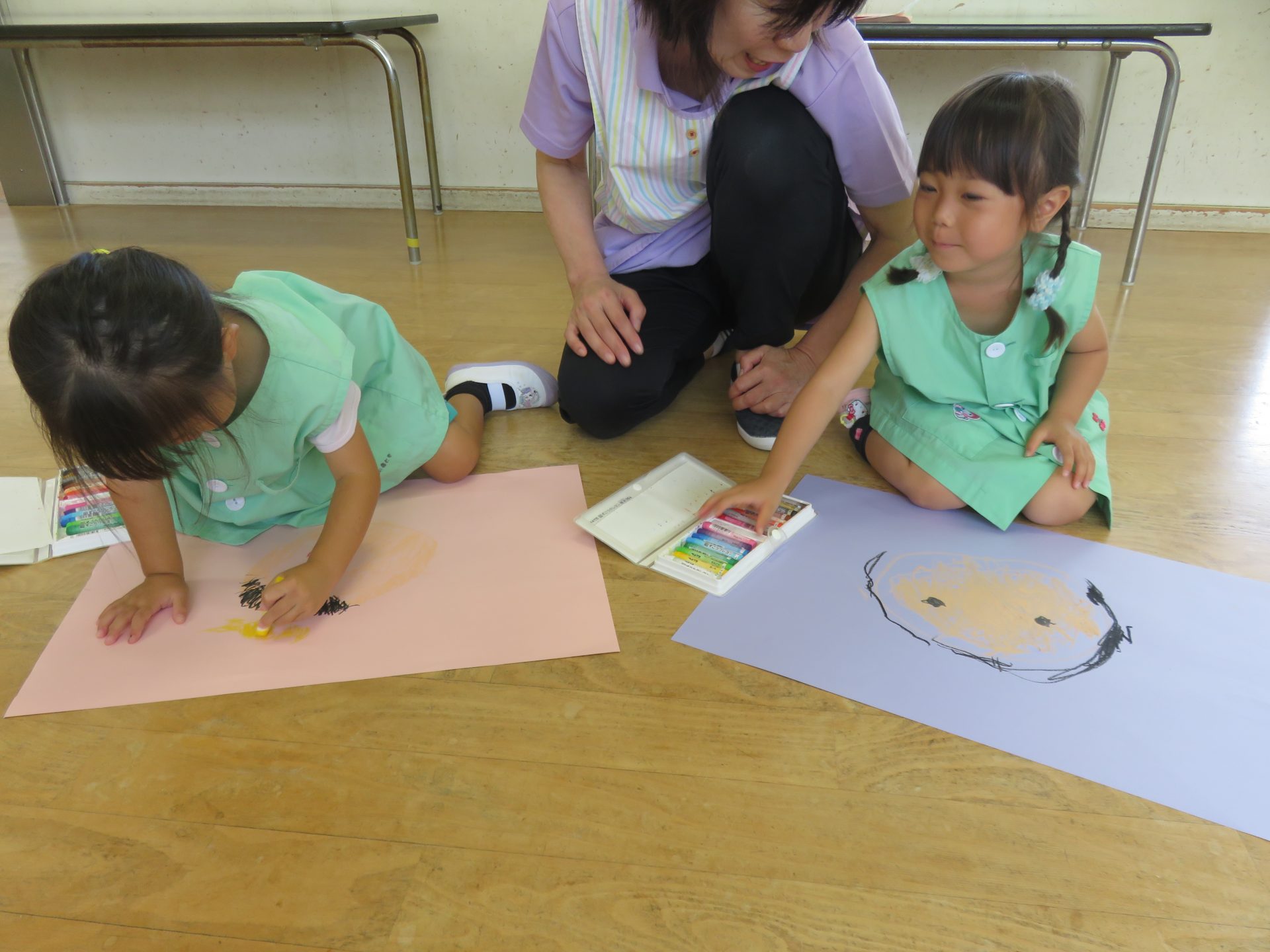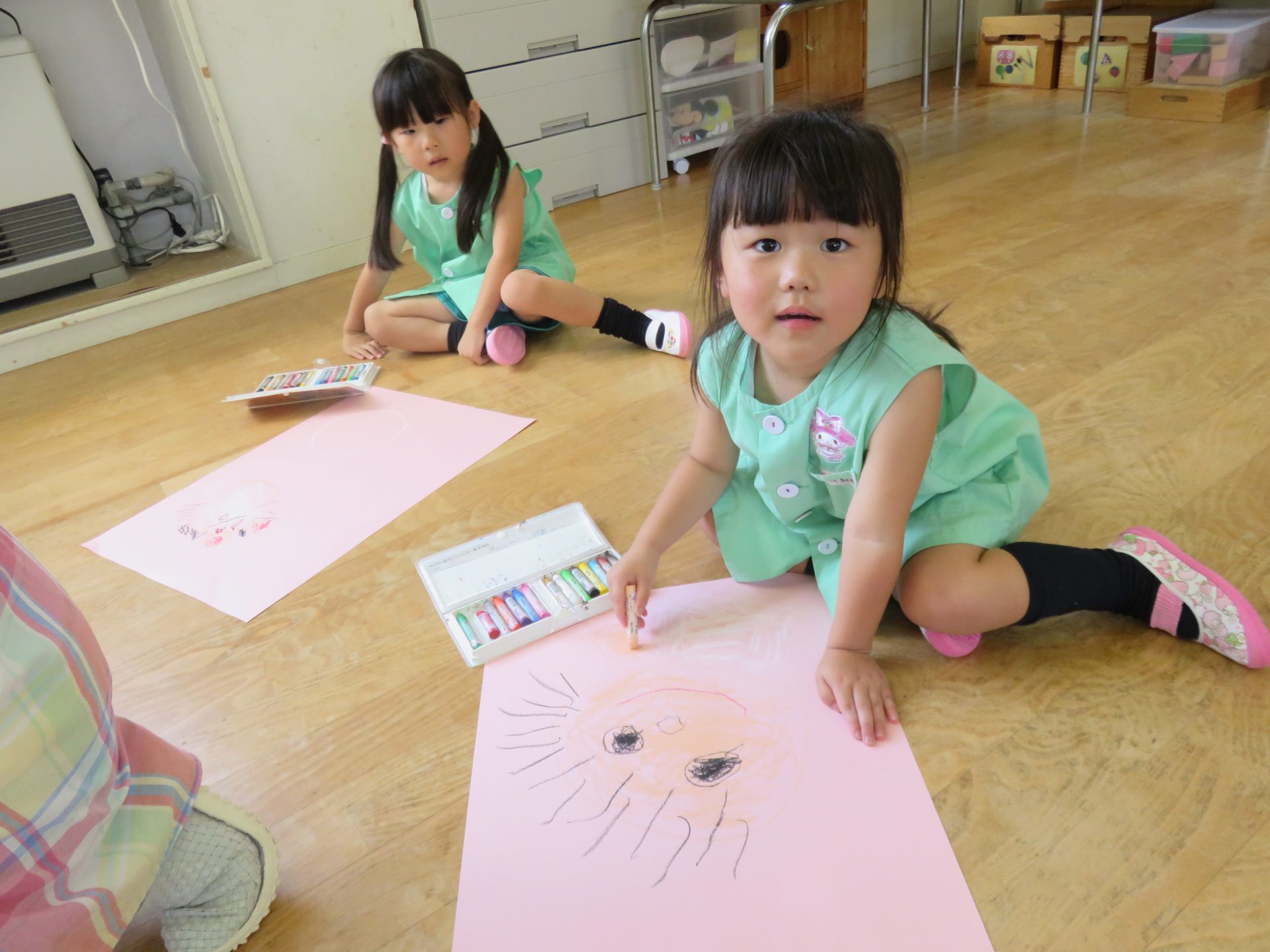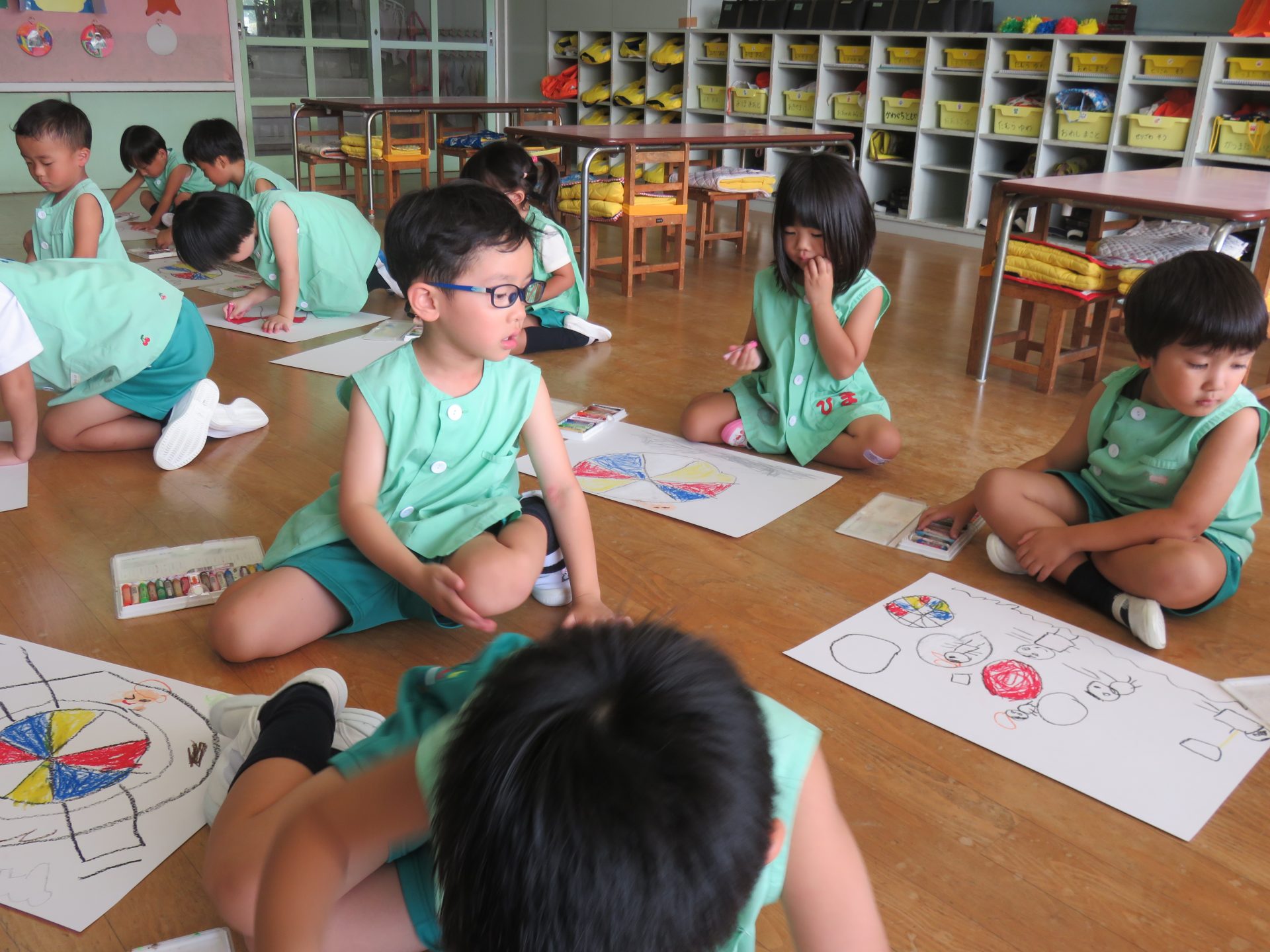 思い思いの運動会の思い出を画用紙いっぱいに描きみんな真剣な顔でした