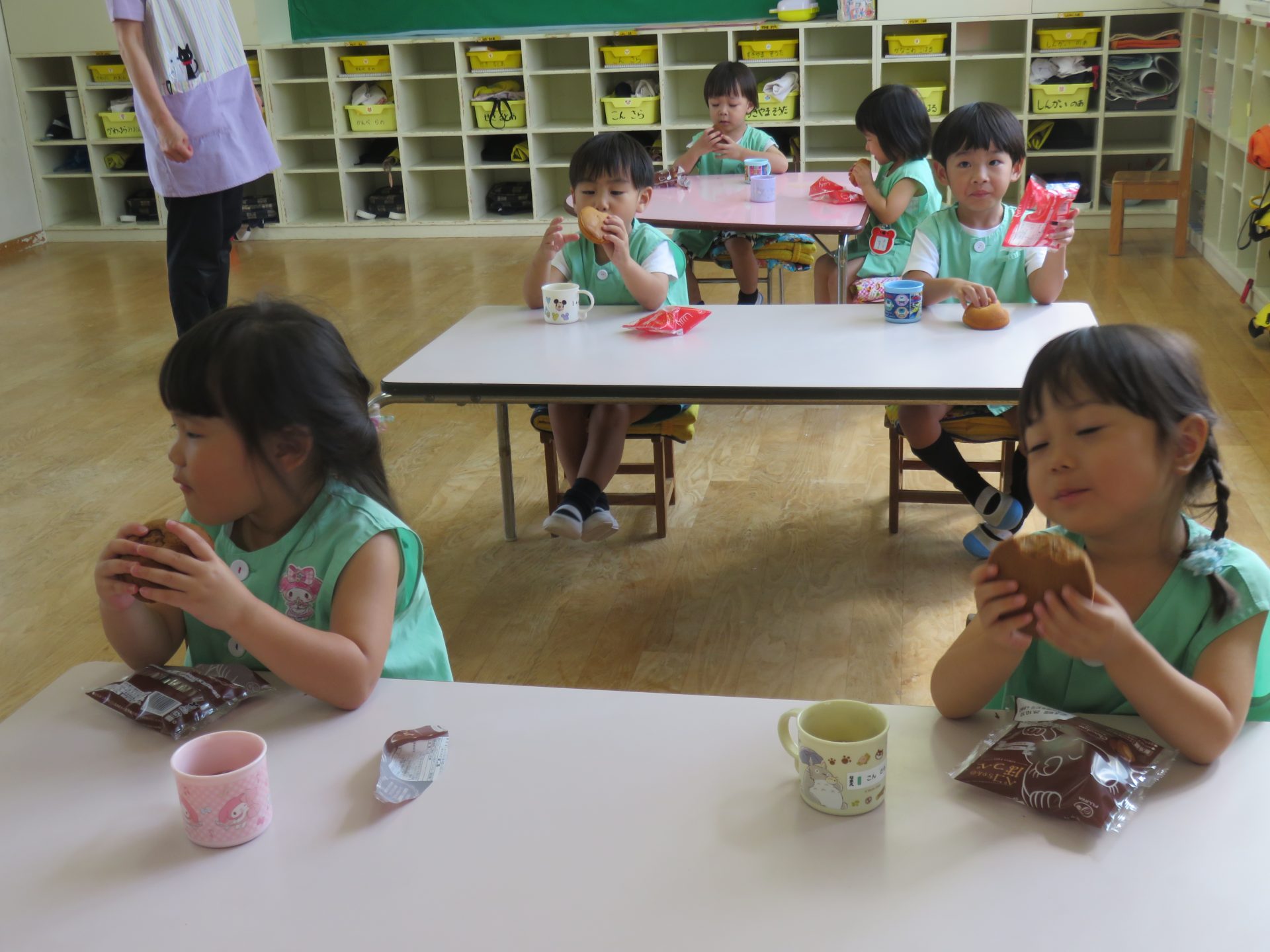 そして運動会を頑張ったご褒美にペコちゃんのほっぺの特別なおやつを楽しみました