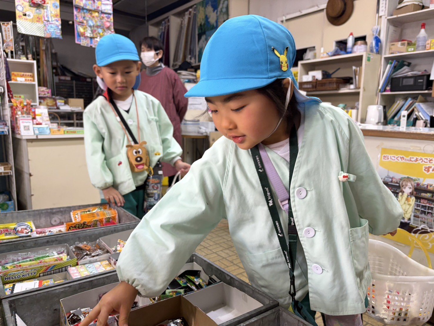 沢山あるお菓子から買いたいものを、決められたお金の中で買う体験をしました