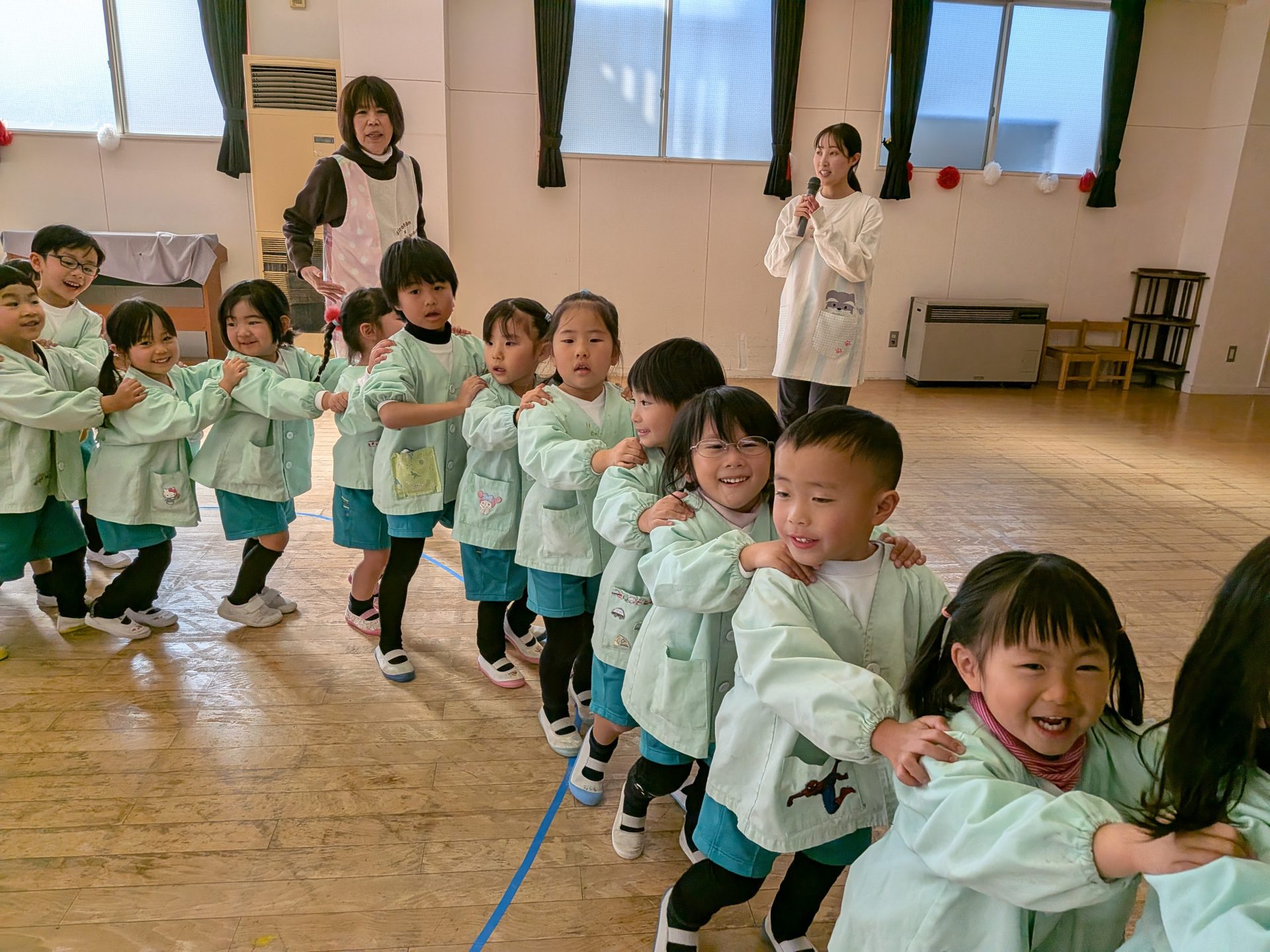 どんどん長くなる列車の列にじゃんけんに勝った子も負けた子もニコニコ笑顔